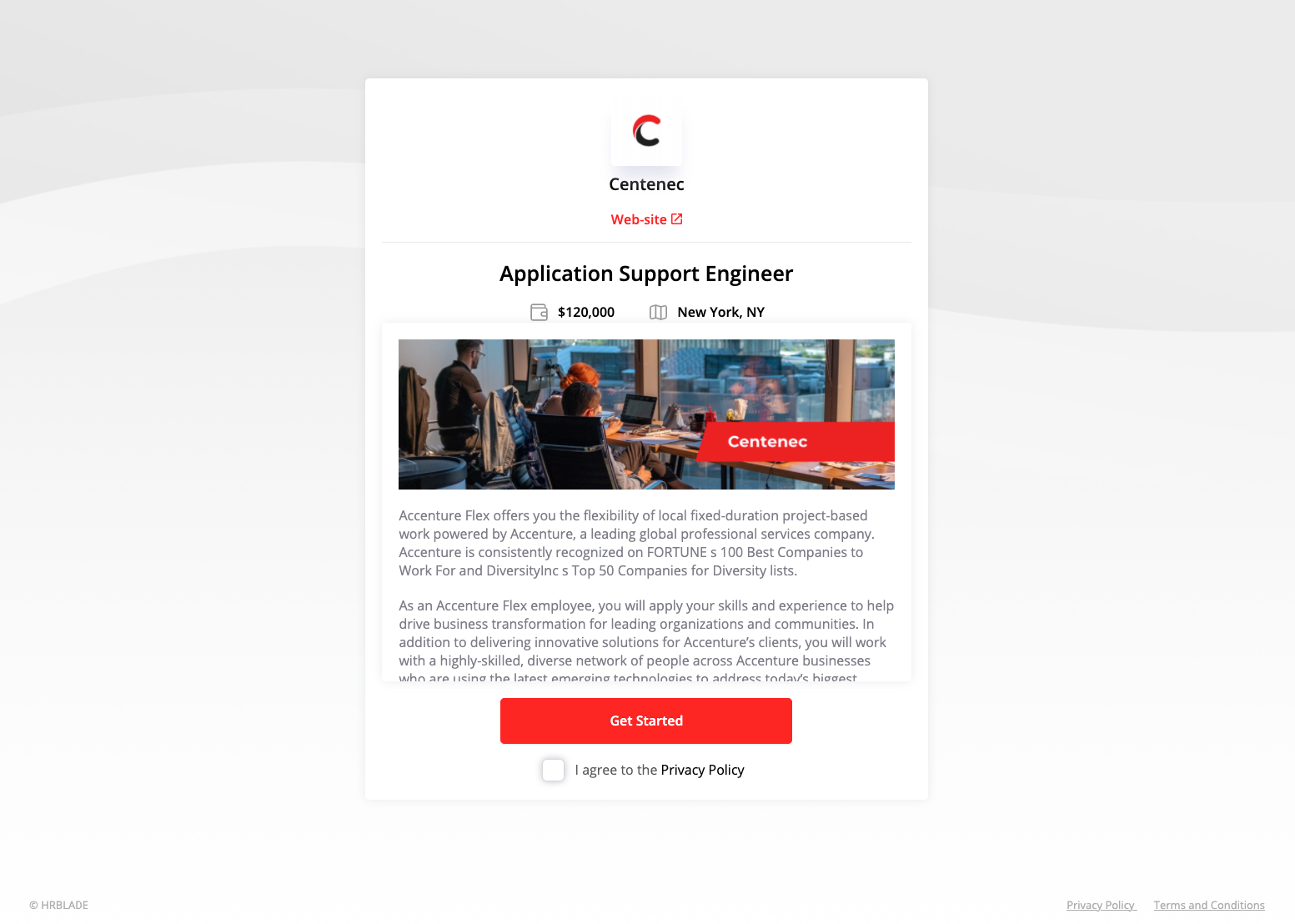 Confirm that you agree to the privacy policy and terms of service and click Get Started.