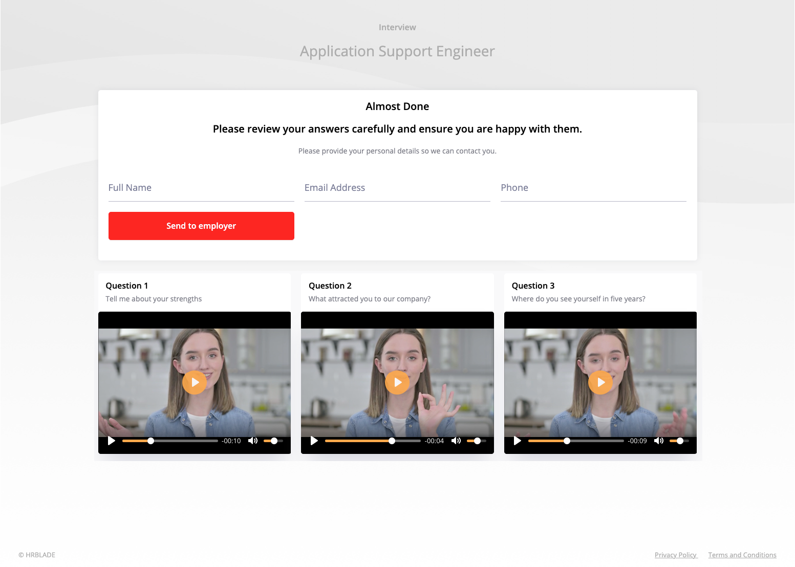 After successfully submitting the interview, you will see a message.